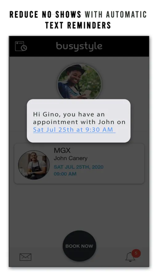 Clients you book get a text with their appointment info even if they aren’t on Busystyle which means you’ll further reduce no shows because they’ll be able to manage their slot from the text and receive 24 hour reminders