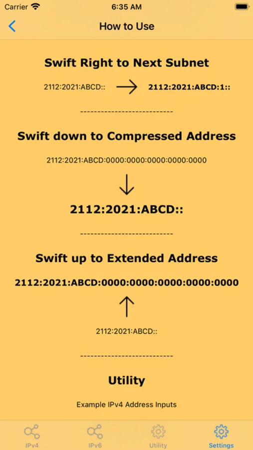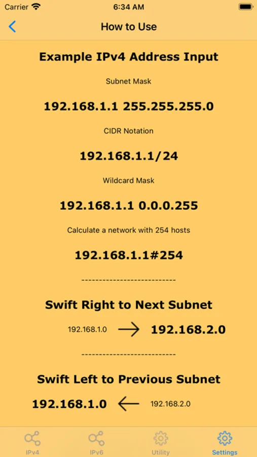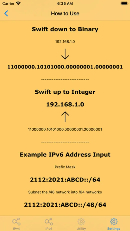 - Swipe on screen Up or Down to see Decimal IP Address or Binary IP Address