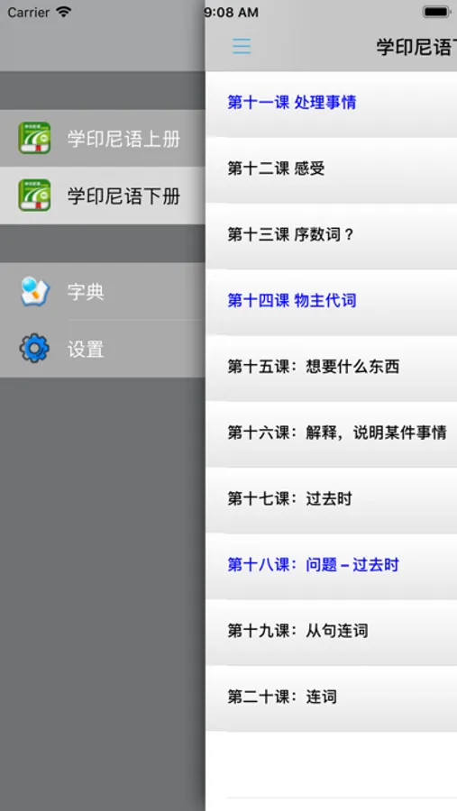 满足了初学者的所有要求。不仅软件设计大方美观,内容更是丰富多彩。从基础入门,到日常生活、青春校园、职场风云、特色文化等,几乎涵盖了所有你能想到的,以及你若是有机会去印度尼西亚旅游生活或是工作能够用到的所有方面。