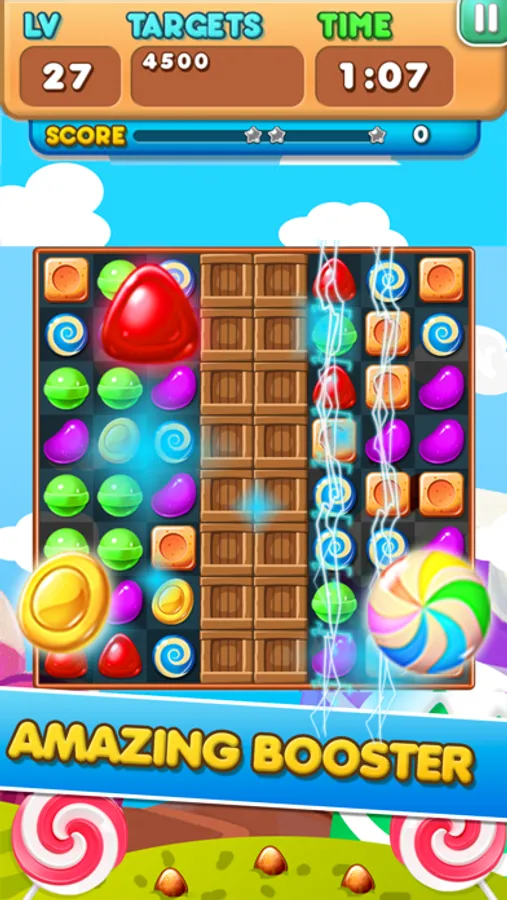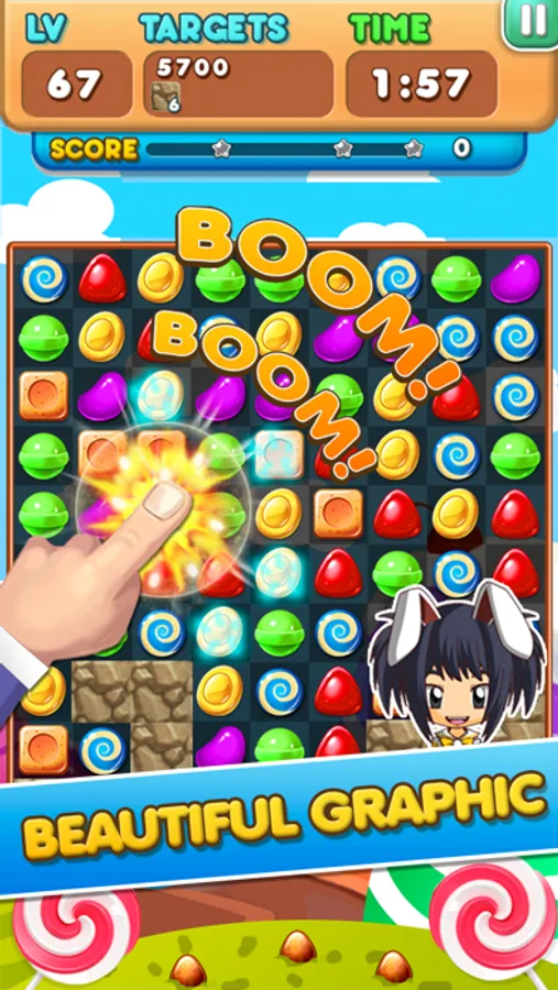 Amazing and addictive great match 3 puzzle game Candy Frenzy.