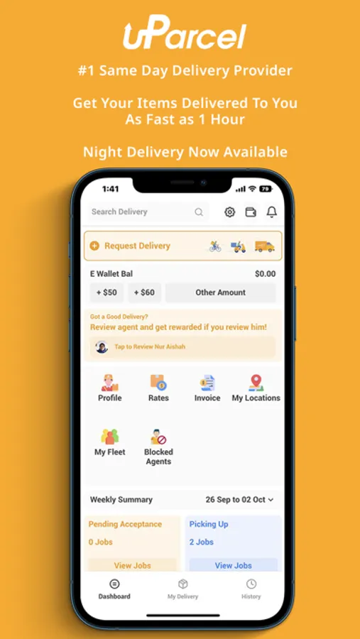1. Take a photo of the items you want to deliver, enter the address and request for a pickup