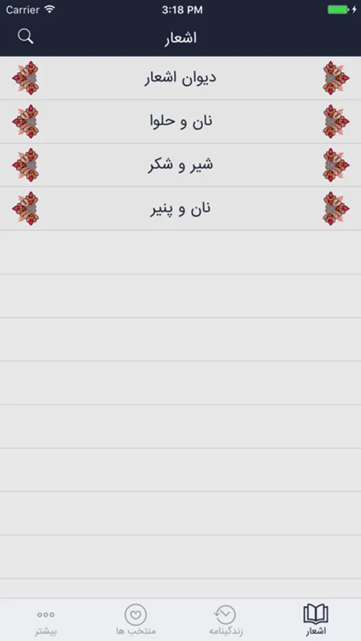 - شعرهای مورد علاقه ی خود را میتوانید درقسمت «اشعار دلخواه» ثبت کنید