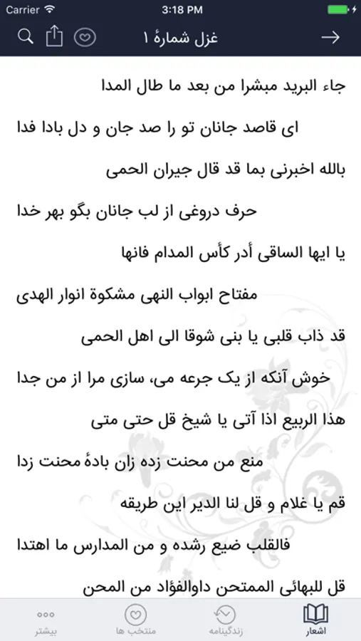 - قابلیت کپی اشعار جهت استفاده در نرم افزارهای مختلف