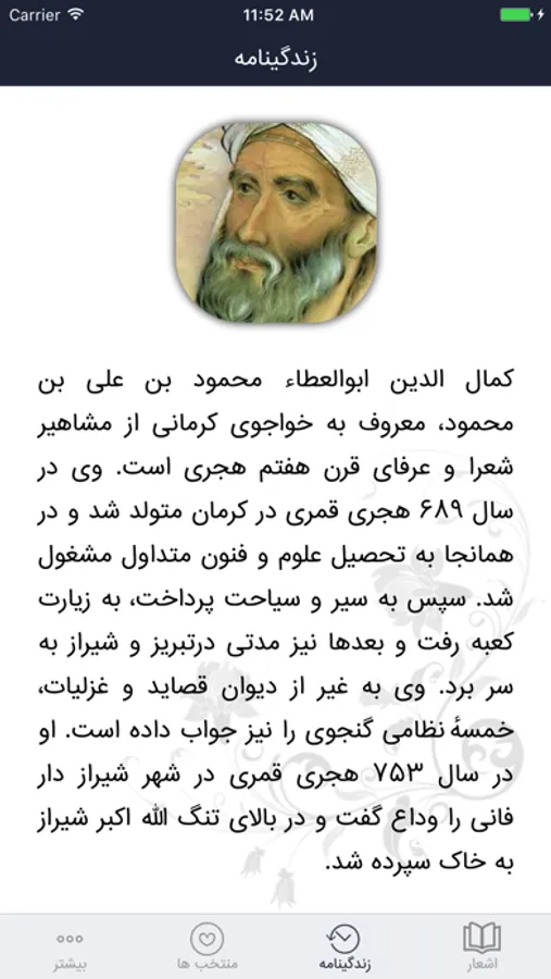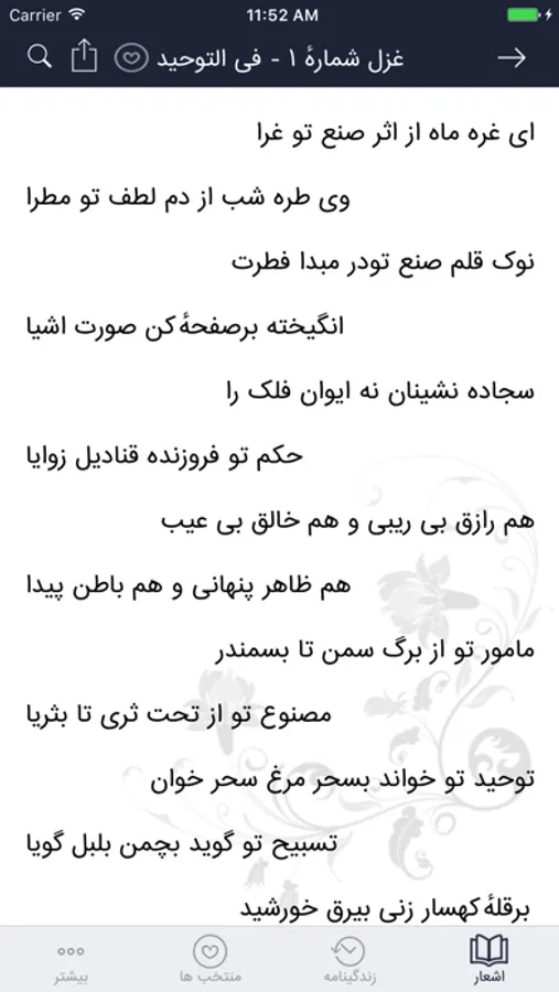 - قابلیت کپی اشعار جهت استفاده در نرم افزارهای مختلف