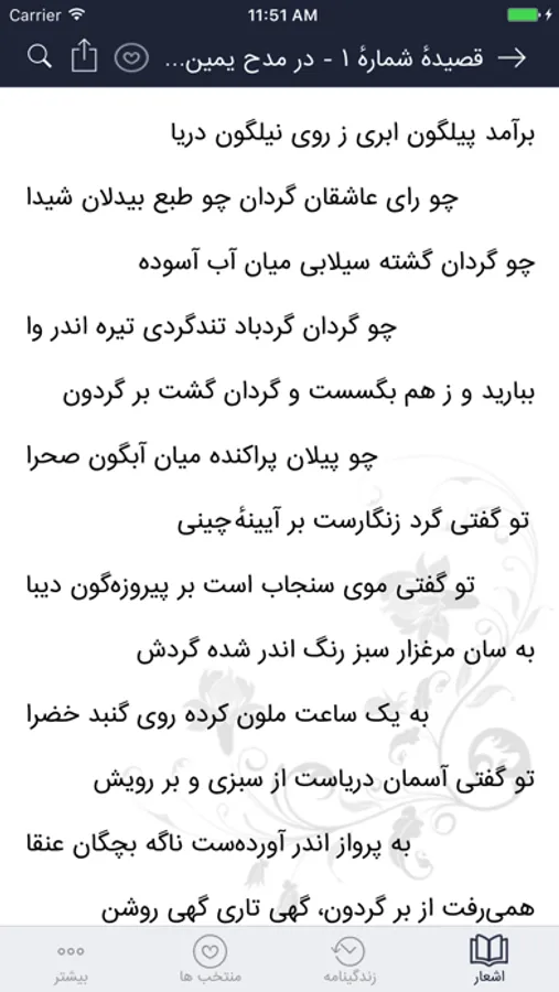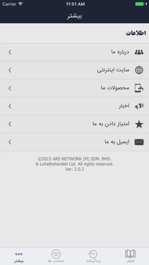 - قابلیت کپی اشعار جهت استفاده در نرم افزارهای مختلف