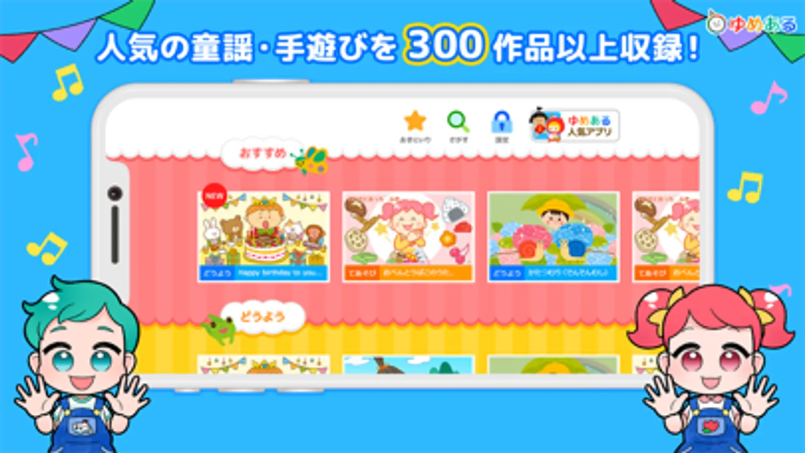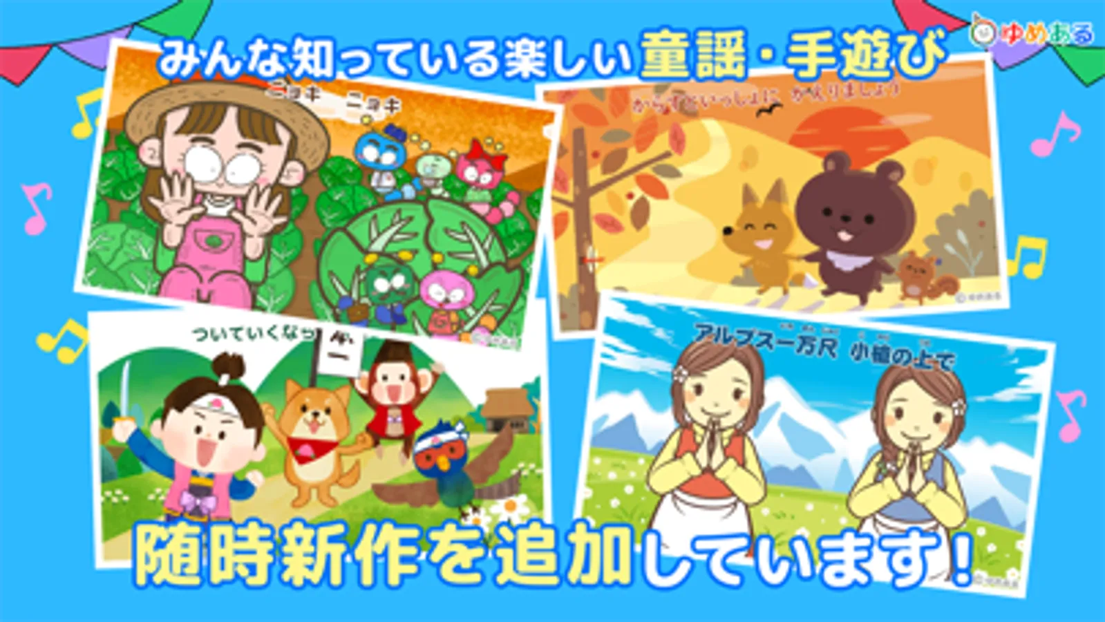 人気の童謡と手遊び歌が300作品以上収録。随時新作がどんどん追加されます。