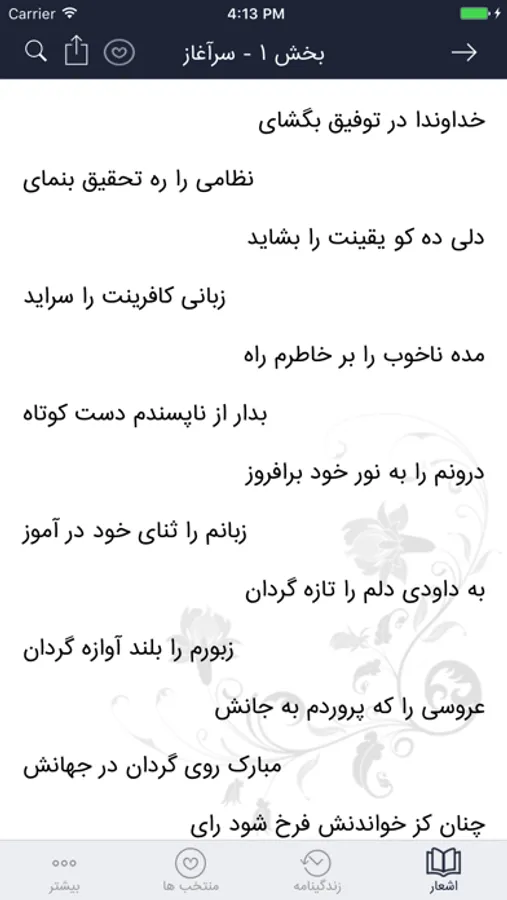 - شعرهای مورد علاقه ی خود را میتوانید درقسمت «اشعار دلخواه» ثبت کنید