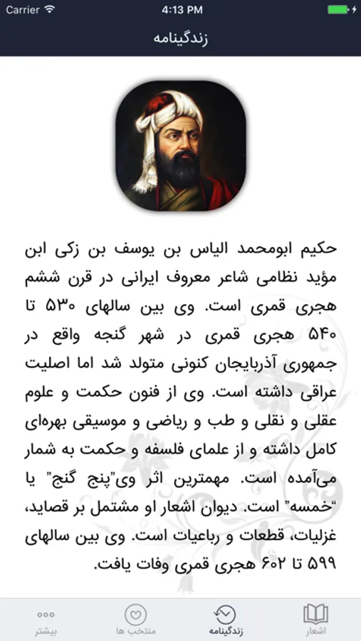 - قابلیت کپی اشعار جهت استفاده در نرم افزارهای مختلف