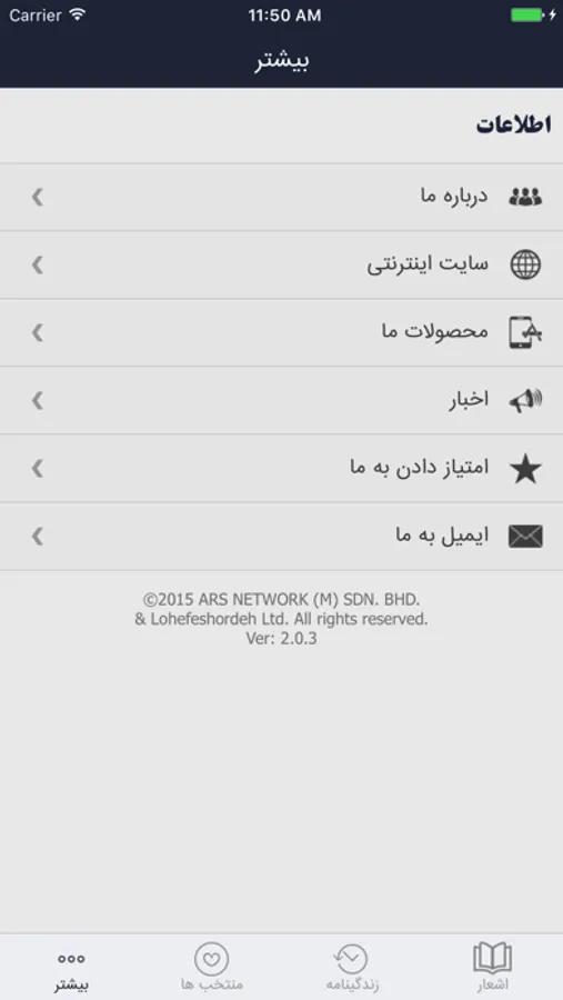 - قابلیت کپی اشعار جهت استفاده در نرم افزارهای مختلف