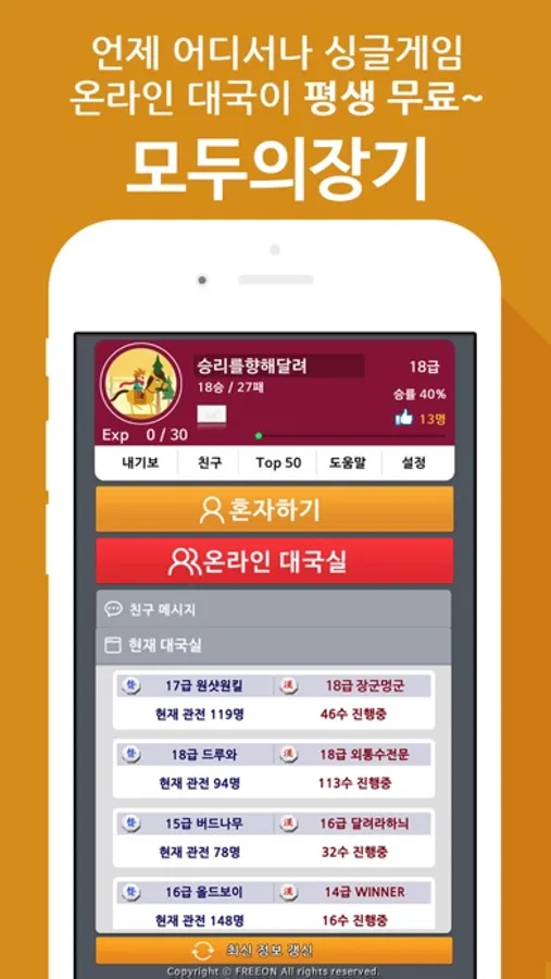 오랜 시간 실력을 연마하신다면 좋은 급수를 획득 하실 수 있지만, 급수 자체가 실제 장기 고객님들의 절대적인 실력이 될 수는 없으니 게임내 등급보다는 친선도모 및 실력 검증을 위해 전국의 다른 고객님들과 함께 즐거운 시간을 보내시기 바랍니다.