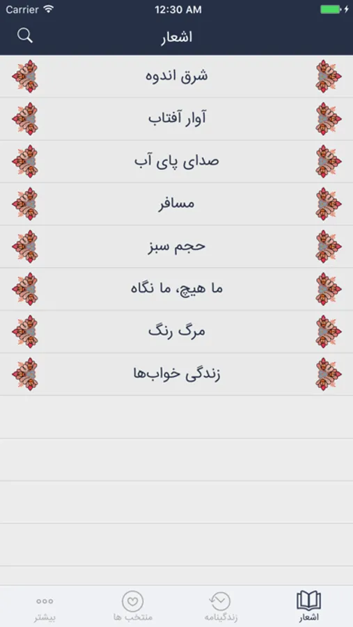 - شعرهای مورد علاقه ی خود را میتوانید درقسمت «اشعار دلخواه» ثبت کنید