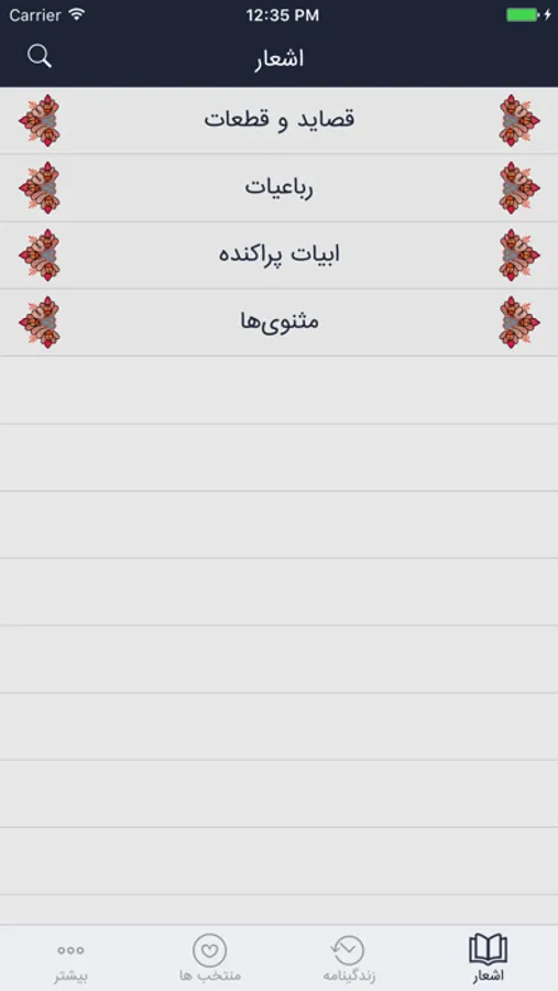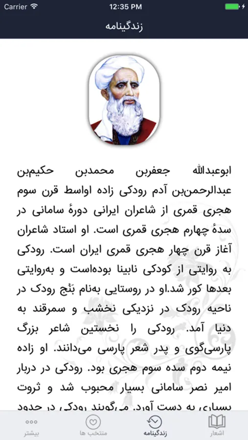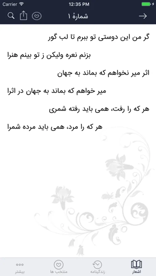 - قابلیت کپی اشعار جهت استفاده در نرم افزارهای مختلف