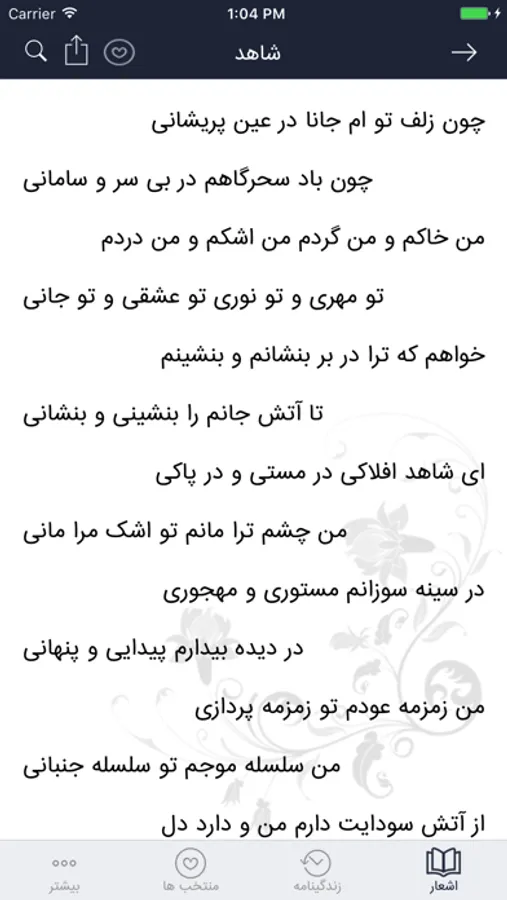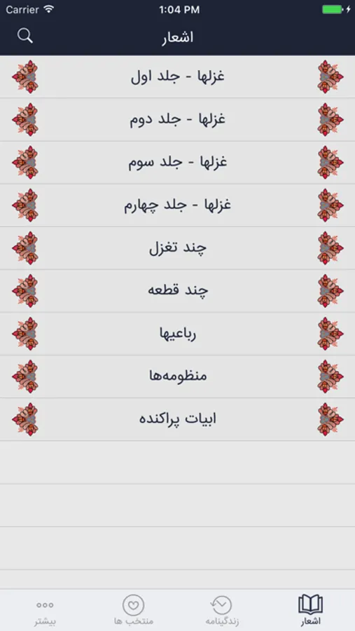 - شعرهای مورد علاقه ی خود را میتوانید درقسمت «اشعار دلخواه» ثبت کنید