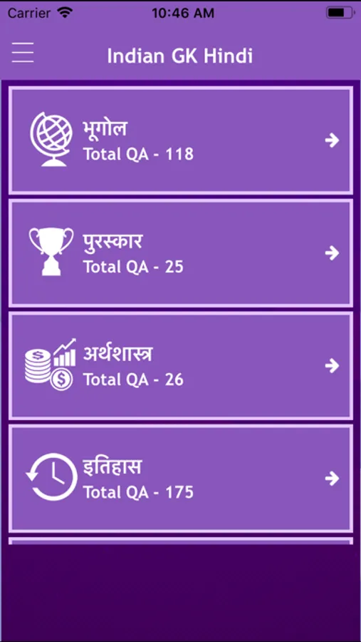 We try to add more and more question form all category but right now we can add approx 20 category like Indian History, science, computer and technologies and sport question. we can continues try to add more and more question.