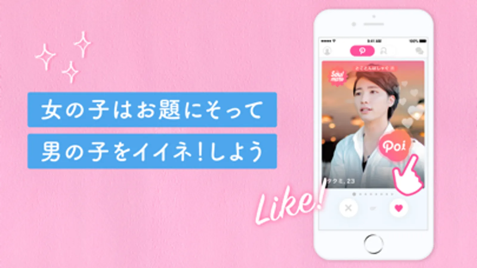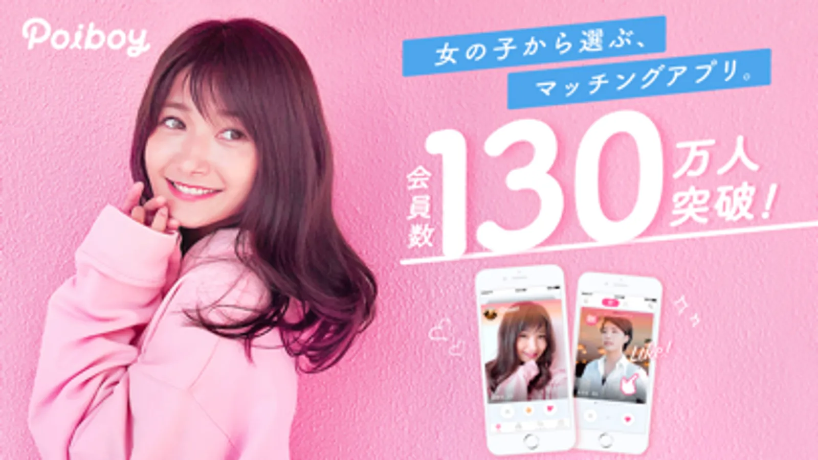 会員数130万人突破!女子が気軽に男子を「Poi(=いいね)」で選ぶ、女性主導の出会い探しマッチングアプリ!