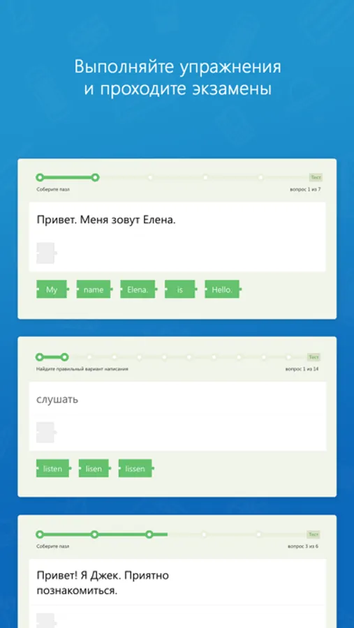 Для проверки полученных знаний вы пройдёте интерактивные тесты и экзамены.
