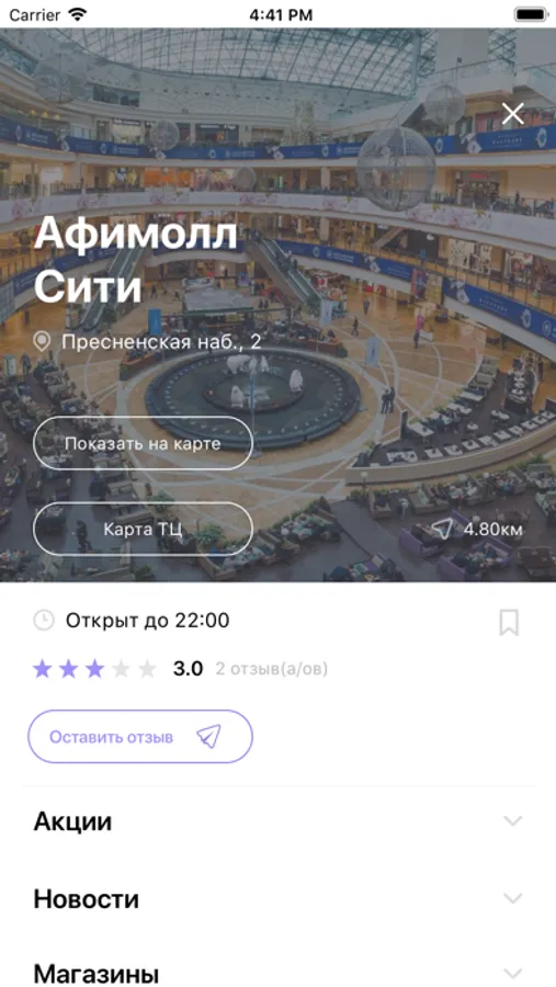 Приложение предназначено для осуществления навигации в торговых центрах и предоставления информации пользователю о скидках и акциях в ТРЦ. Алгоритмы навигации приложения базируются на Wi-fi и Bluetooth сетях, с корректировкой за счет данных сенсоров мобильного устройства (магнитометра, акселерометра и гироскопа).