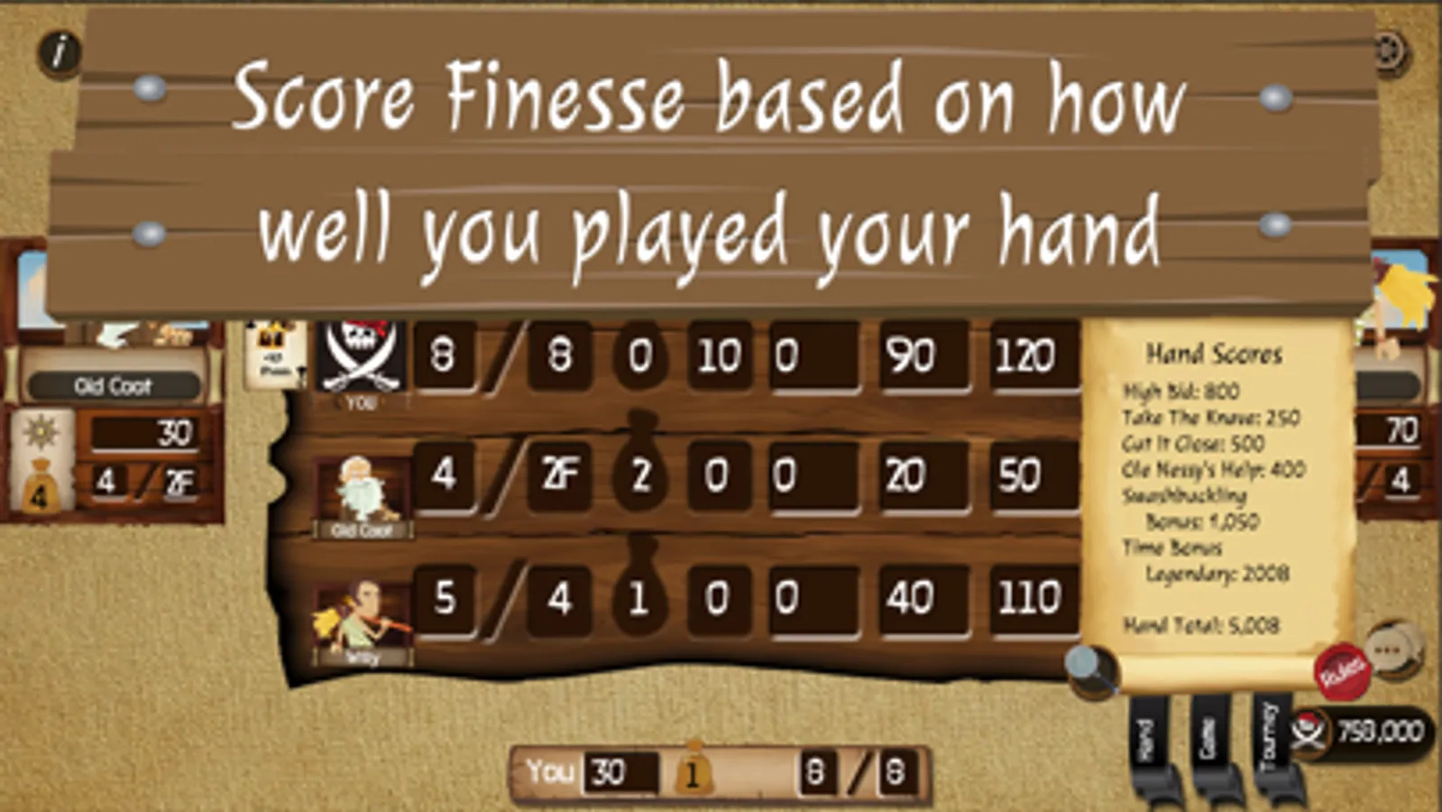 Spades is presented like never before, in this unique story-driven twist on the classic card game. Pressed into service by pirates, you must match wits with the crew before facing off against Captain Anderson of the Rose Marie to win your freedom.