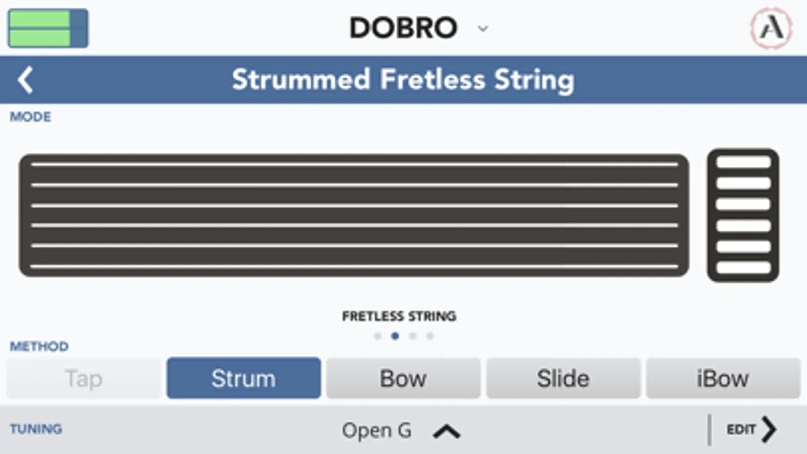 • Use this app to choose the modes and methods for playing your INSTRUMENT 1. Modes include Fretted, Fretless, Grid, and Pad. Methods include Strum, Bow, Slide, Tap, and iBow.