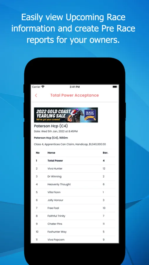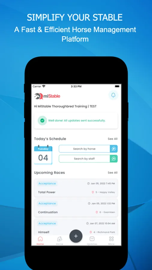 Then pair your owners to you via the miStable Owners App. An app dedicated to owner needs, providing their horse updates as well as race notifications - the only system to provide an alert 9 minutes before the jump.