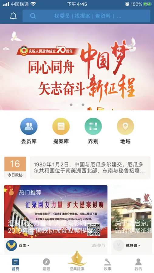 《议库》项目积极响应“探索网络议政、远程协商”的号召,在移动互联网大发展的背景下,由中国互联网新闻中心(中国网)于2016年1月创建的全国首款专门探索“网络议政”,服务各级政协组织和政协委员的移动端平台。在新时代,该平台基于移动互联网环境,以70万全国各级政协委员、统战领域相关几百万高端人群为主要用户,辐射、联接广大移动互联网网友,提供提案征集、民意征询、调查调研、智库咨询、数据检索、舆论引领、线上线下互动等服务,通过互联网手段,为政府建言、为企业助力、为各行各界协调关系、为实现中国梦汇聚力量。