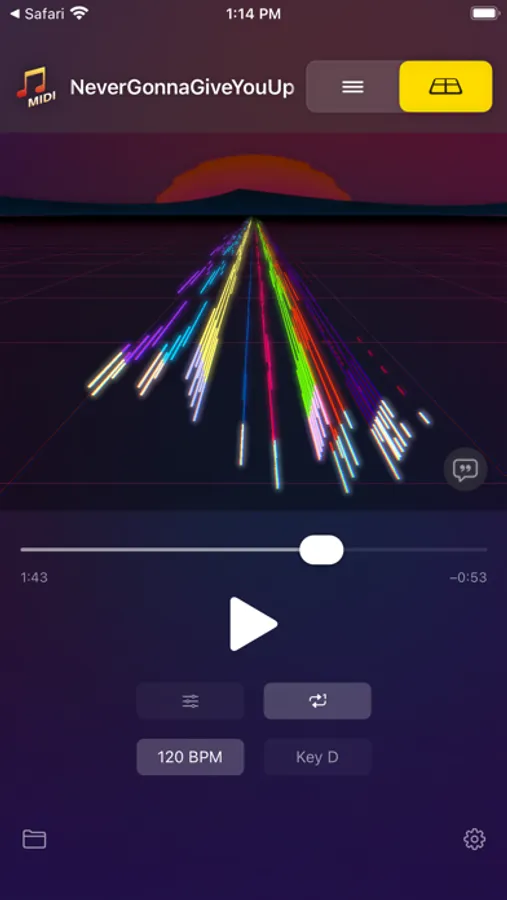 * 3D visualizer: View the song's tracks and notes in 1980's synthwave style.