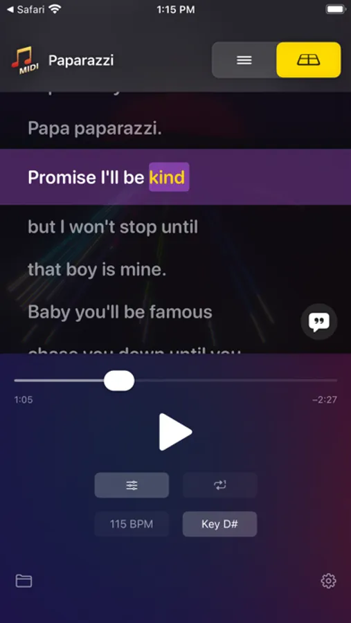 * Bundled sample song: All upgrades are enabled for the app's bundled song which you can load by tapping the logo or from Settings. This song is available to help you get started and explore the app's capabilities.