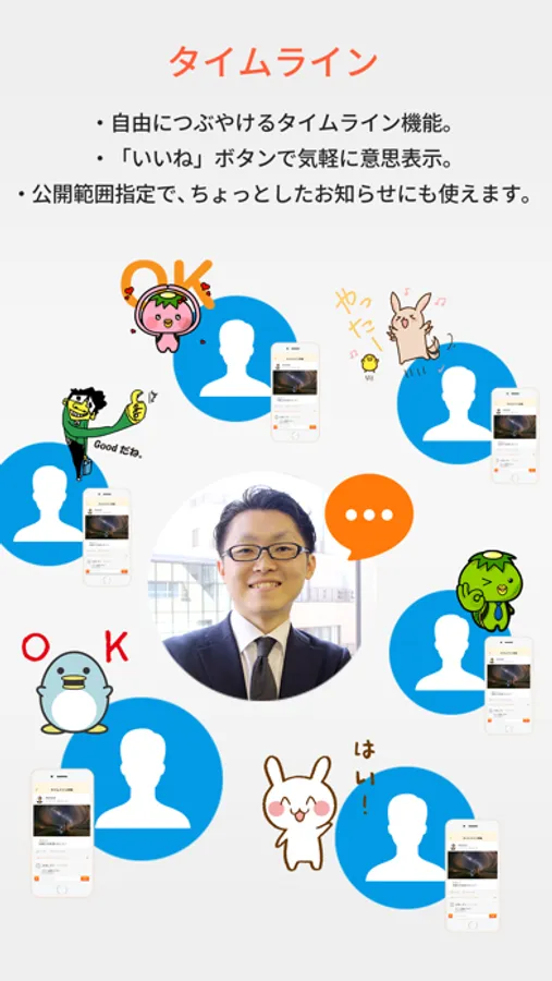 タイムラインを利用した全社員へ向けた情報発信も簡単に行えます。