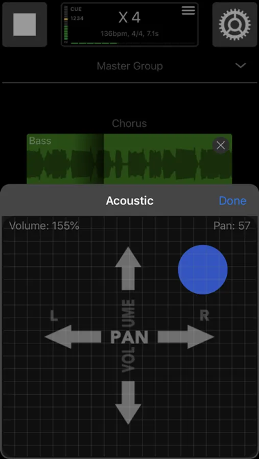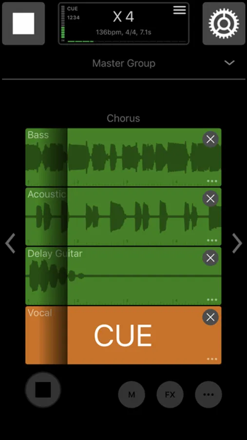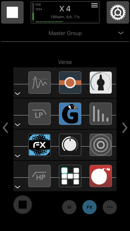 Create songs with verse, bridge and chorus structures and switch between them in real time.