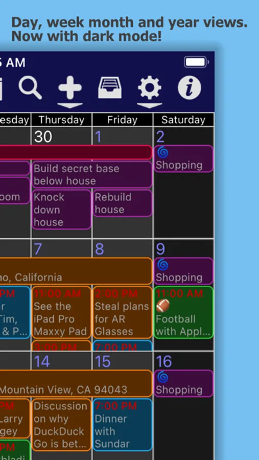 ● Supports calendars in iCloud, Google, Exchange, Yahoo and any calendar that can be synced to the device