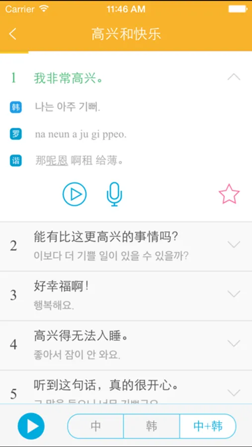 (4)真人优质发音+例句录音评分,助您轻松开口说最地道的韩语。
