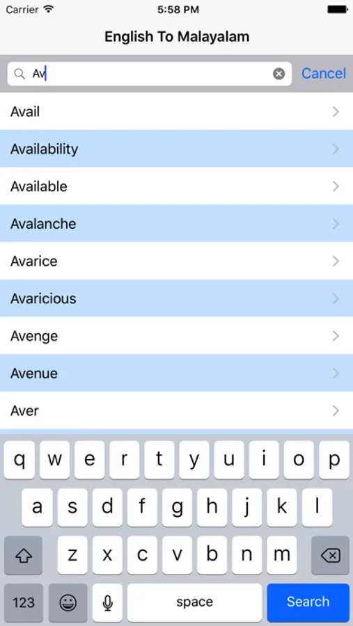 This dictionary provides Malayalam meanings of 25,000+ English words.