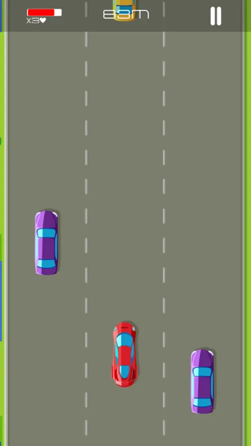 The gamer is given three tracks (traffic lines); by swiping or tapping the tracks he moves to the left or to the right. The task is to avoid/overtake the vehicles racing ahead of him.