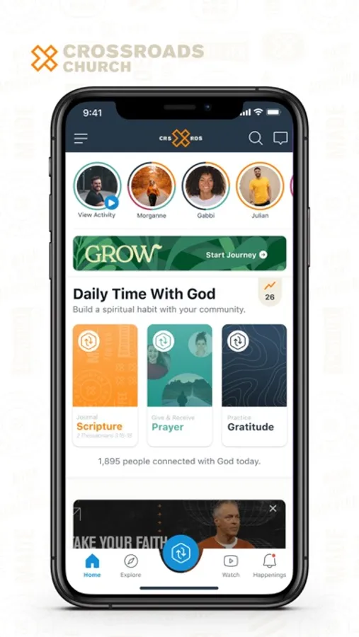 Crossroads Anywhere is built to inspire and equip you with a simple way to form a spiritual habit. Get to know God with daily practices of Scripture, Prayer, and Gratitude, and join our growing community of Christ-followers who are changing the world.