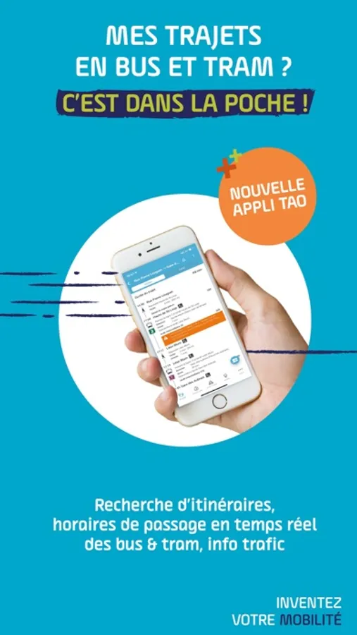 L’Appli Tao permet d’accéder à l’ensemble des informations sur les services de mobilité de la Métropole d’Orléans : Bus, Tram, services vélos, Abris vélos, Parcs Relais.