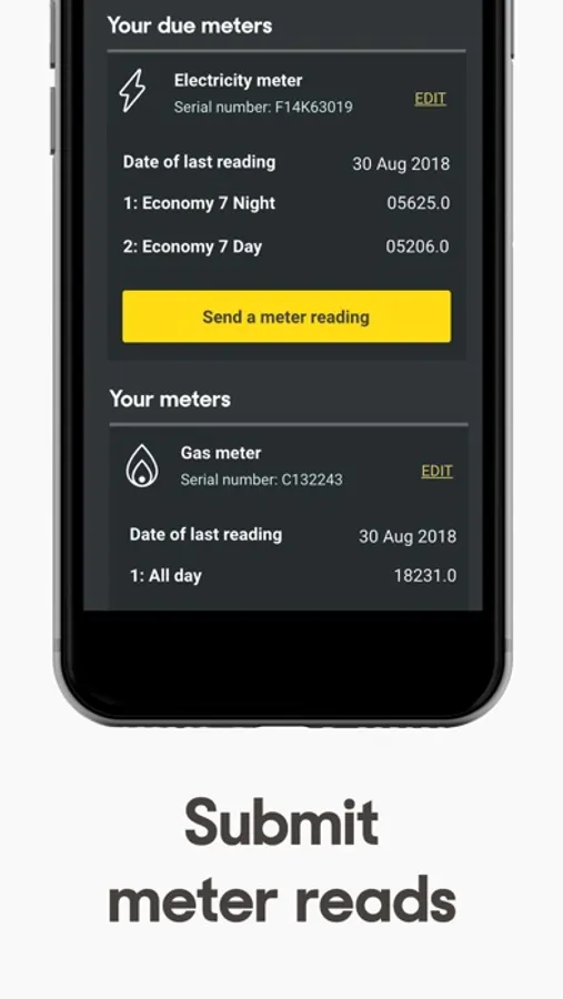 Enter readings for standard and multi-rate meters using pre-stored details. Sending regular meter readings will help us make sure your bills are accurate. So, you can even set up reminders to help you remember to take them.