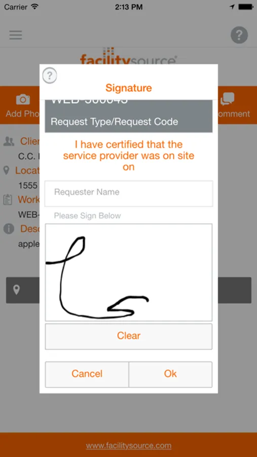 (Please note: This app is intended for usage by FacilitySource Service Providers. Vendors must have Work Order Number and PIN [unique pin provided for each company] to check-in.)