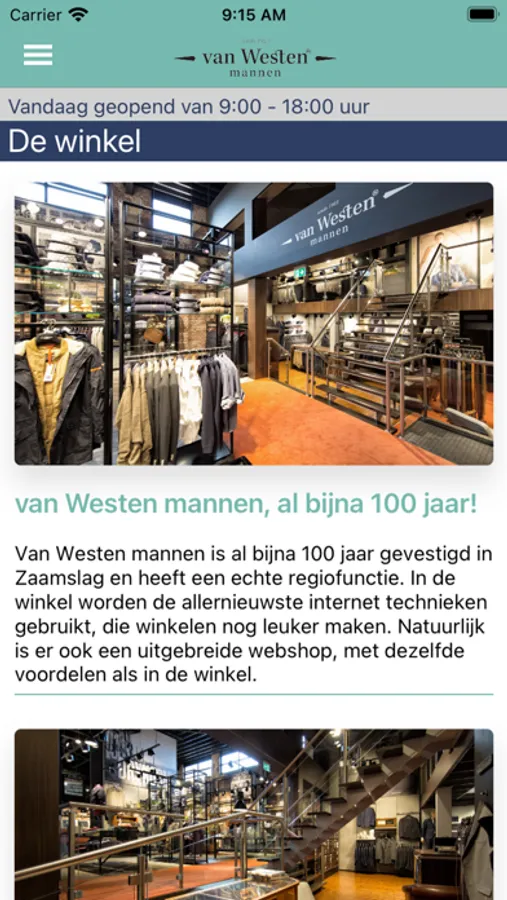 App voor van Westen mannen klanten, die toegang geeft tot allerlei voordelen en het laatste fashion nieuws.