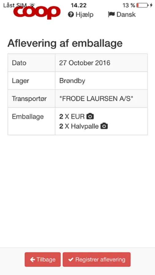 Coop Emballages mobil app bruges til at registrere afhentning af returemballage i Coops butikker. Mobil-app'en bruger telefonens lokalitetstjeneste til at finde butikken. Når chaufførerne finder butikken vha. app’en, så er det muligt at se om butikken har oprettet en afhentningsordre. Butikken skal have oprettet en afhentningsordre, for at chaufføren kan registrere afhentning af emballagen.
