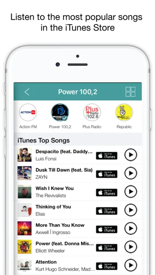 • see, listen and if you want to get 50 top songs in the iTunes Store of your country.