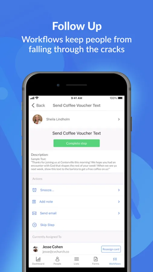 • Stay on top of the processes in your church with Workflows.