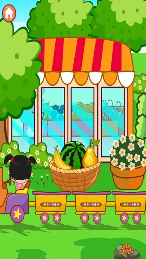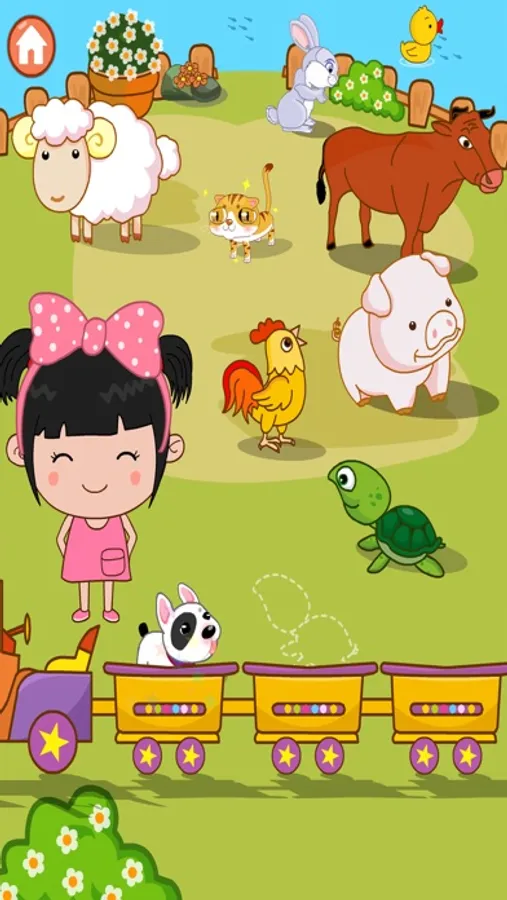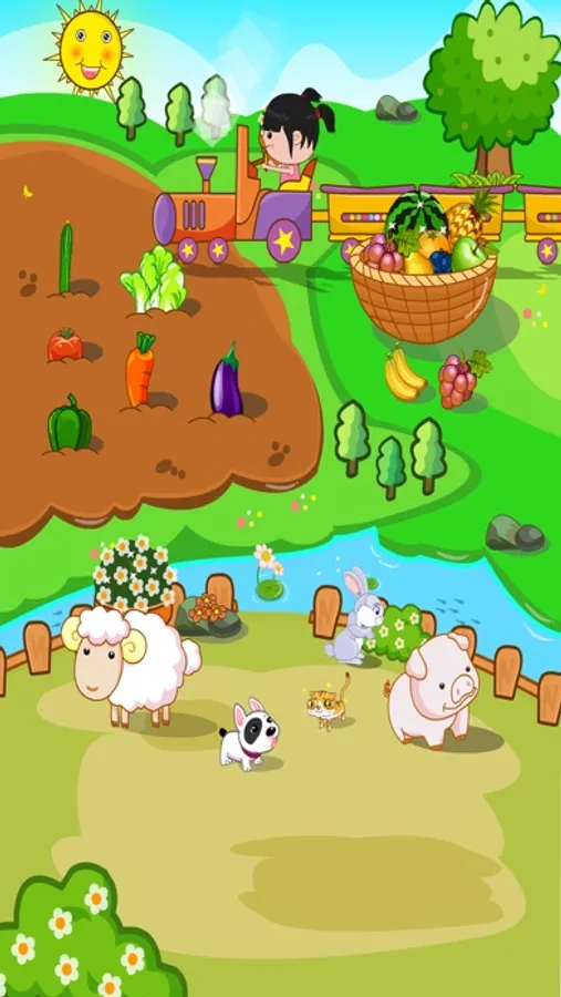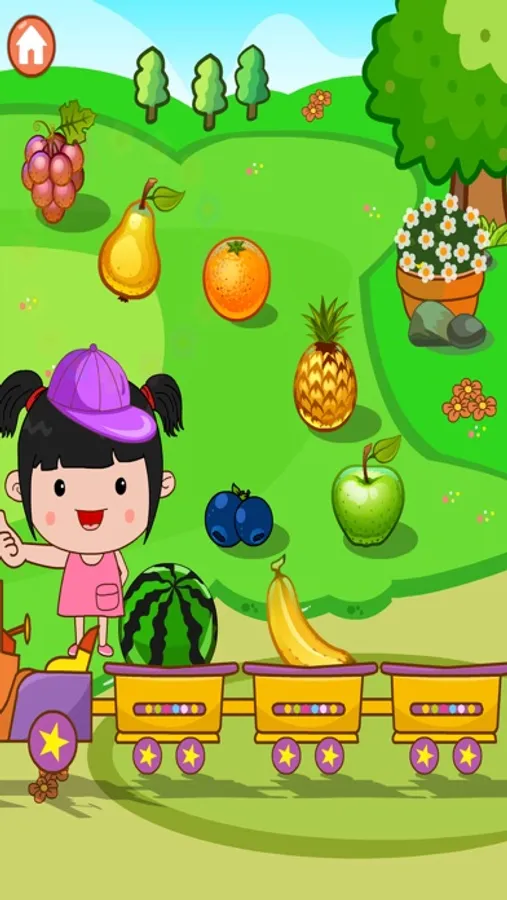 丫丫这次扮演的是个火车司机!丫丫分别去农场、果园和动物园去帮忙运送小动物、蔬菜和水果到不同的地方。通过语音和图形提示,全部选择正确后,火车会开动喔。这是个很有趣味性的学习娱乐游戏,有利于学习进步.