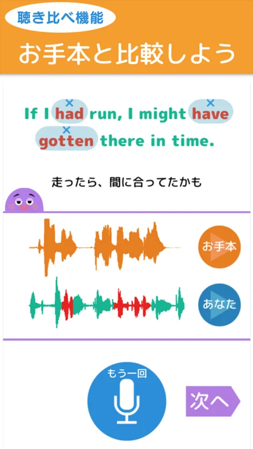 お手本の発音と自分の発音を聴き比べてみましょう。