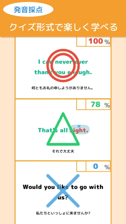 お手本音声が流れるので、発音と同時にリスニングの力も向上します。