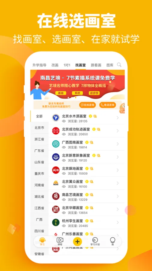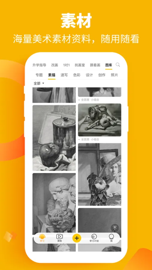 作为美术生的在线画室,各种美术学习素材应有尽有,超级步骤图,跟我画跟我嗨。