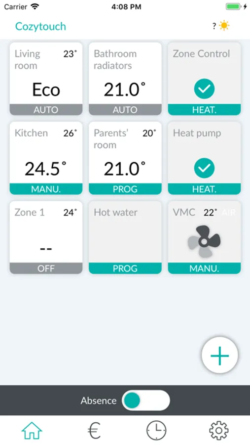 When linked to the Cozytouch gateway, the app lets you control your connected appliances: radiators, bathroom radiators, heat pumps, VMC, air conditioning, water heaters, zone control and interfaces.