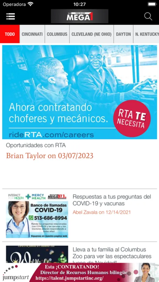 This is the mobile device home for La Mega Nota, La Mega Radio stations throughout Ohio (Cincinnati, Dayton, Columbus, Cleveland and Akron), Northern Kentucky and Pittsburgh, Pennsylvania.