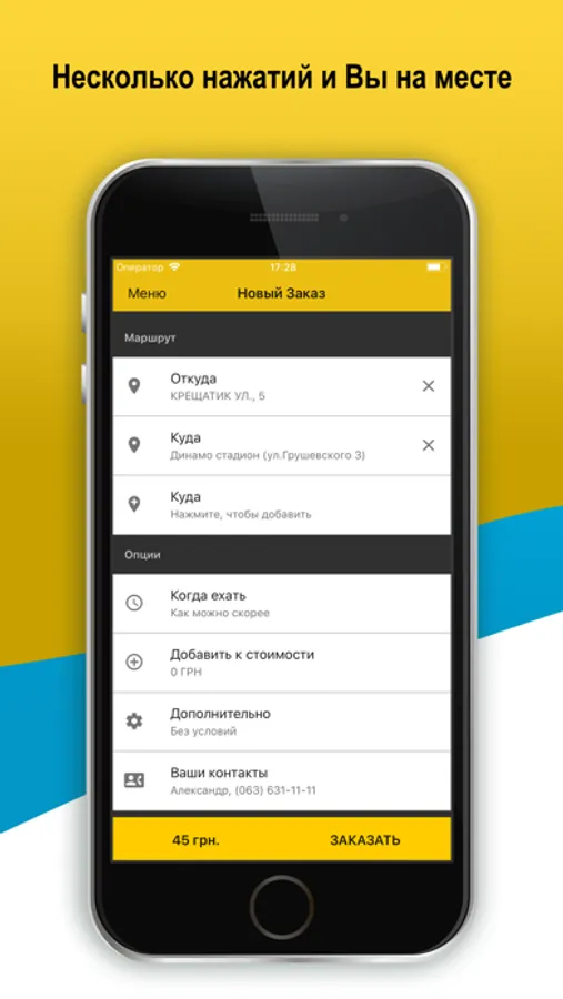 Теперь, чтобы заказать такси в Киеве - Вам не нужно больше звонить оператору - просто заполните несколько полей, и наше приложение закажет такси за Вас.
