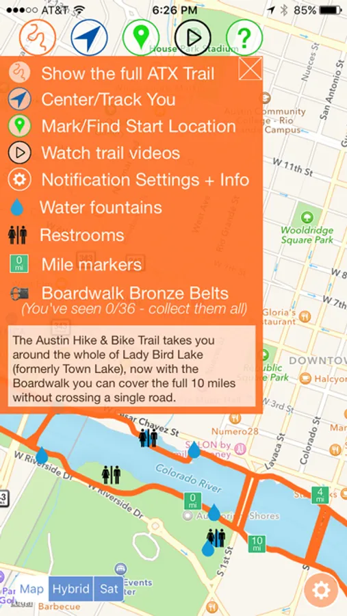Whether you use the trail every day or are planning a visit, "ATX Trail" will help you - you will know where you are and can see where the nearest water fountain or restroom is, and even tell you when they are close by.