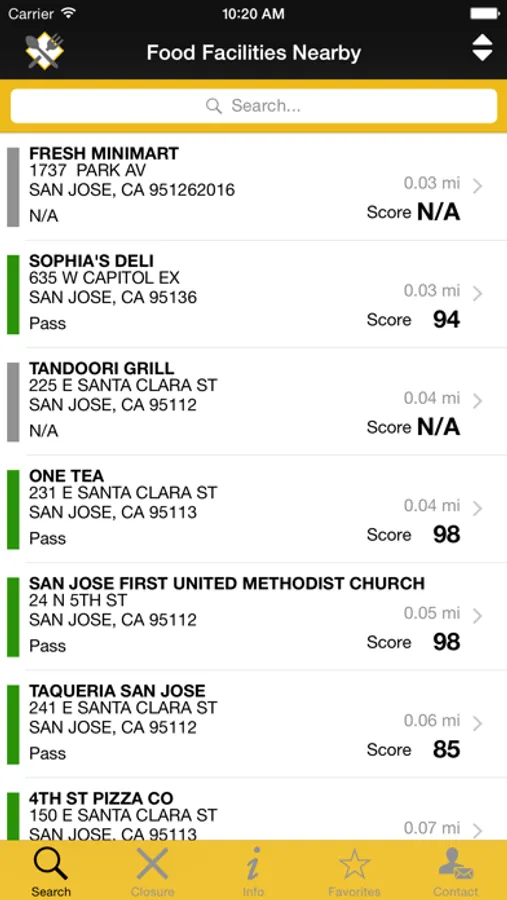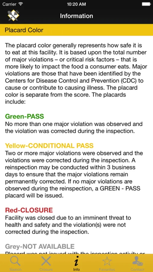- Easily view closure information for food facilities that are immediately closed due to a major violation.